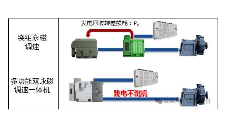 【解決轉差調速損耗策略】 將發熱轉差功率用永磁轉差發電技術來回收轉差能量。